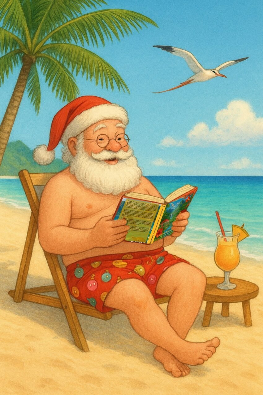 Chaque année, avant d’affronter sa grande nuit de cadeaux, le Père Noël s’offre quelques jours de repos bien mérités. Et cette fois encore, il a choisi son ti péi préféré (son petit pays préféré) : La Réunion.